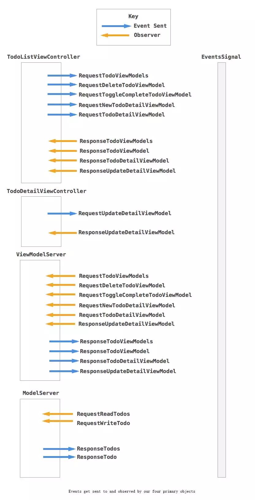 // TodoListViewController.swiftoverride func viewWillAppear(animated: Bool) {super.viewWillAppear(animated)appContext.eventsObserver.sendNext(Event.RequestTodoViewModels)}