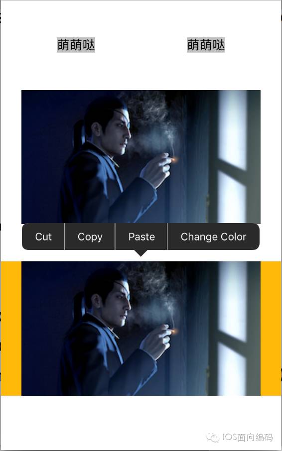 UIMenuItem *item = [[UIMenuItem alloc] initWithTitle:@"Change Color" action:@selector(changeColor:)]; //3.创建编辑菜单