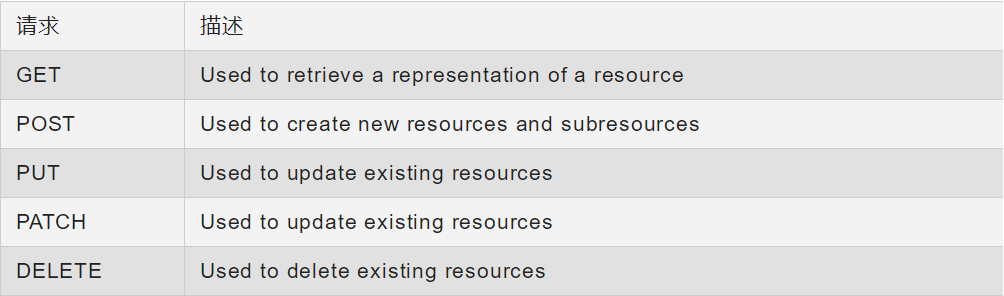 RESTful API 主要由 HTTP 请求方法组成,这些请求方法对任何资源具有明确定义的独特操作。以下是常用 HTTP 请求的列表,这些请求定义了 RESTful API 中任何资源或集合的 CRUD 操作。