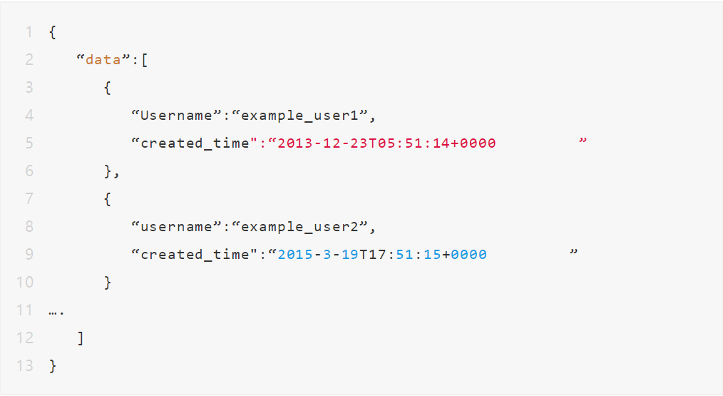 请注意终端用户可以从成功的 GET 调用中获得的每个响应项中描述的数据类型和示例。终端用户将接收JSON 格式的成功响应如下所示。