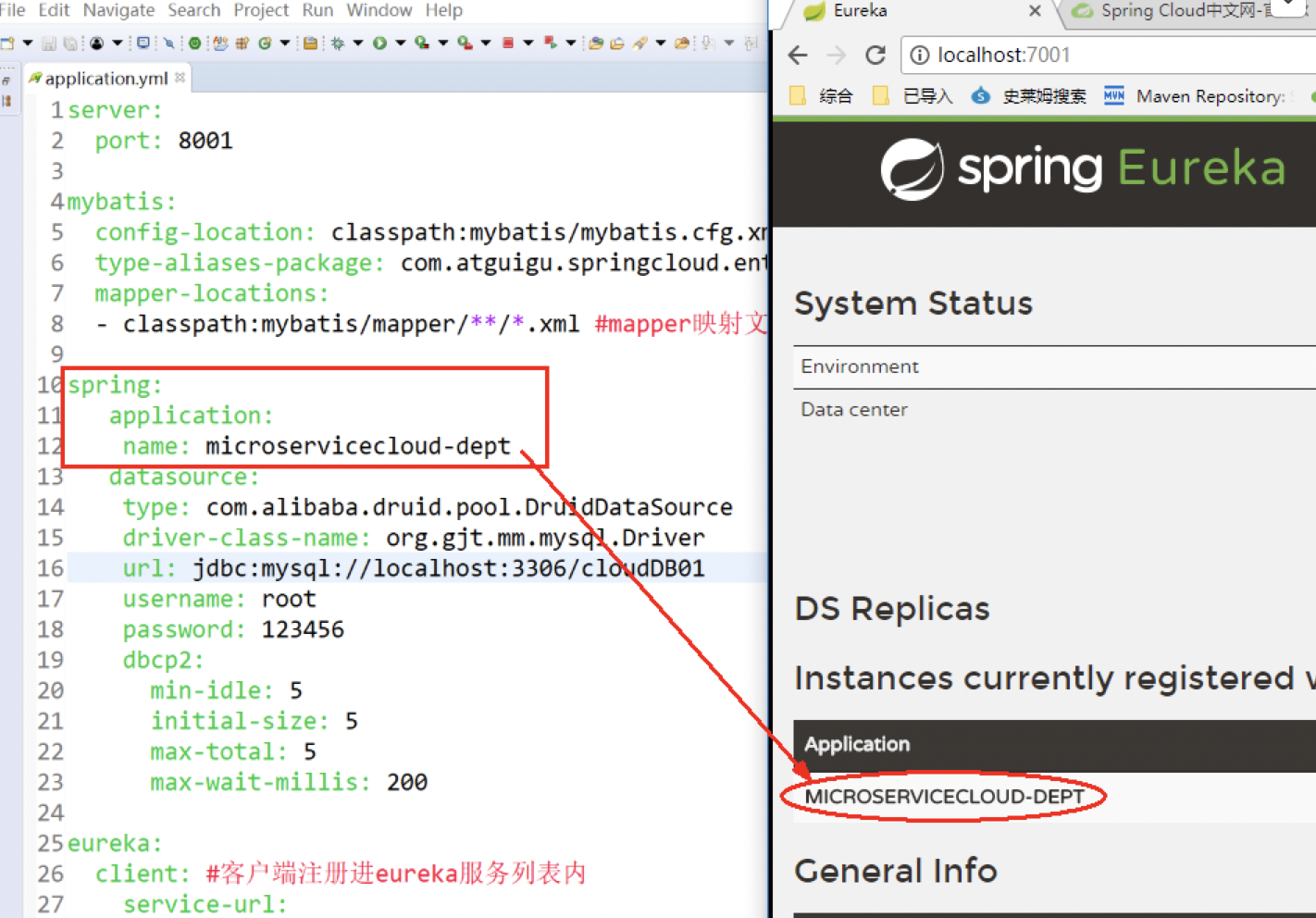 将上一节中构建的microservicecloud-provider-dept-8001(provider)进行配置的修改