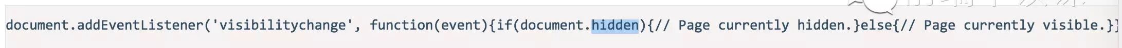 当页面获得或失去焦点时,文档对象的visibilitychange事件便会被触发。这一事件对于了解页面的可见状态十分有用,举例来说,用户可能会同时打开多个浏览器标签,而你希望只在用户显示你的网站页面时才进行某些操作(比如播放一段音频文件、或是执行一段JavaScript动画),就可以通过这一事件进行触发。对于移动设备来说,如果用户在某个标签中打开了你的网站,但正在另一个标签中浏览其它内容时,这一特性能够节省该设备的电池消耗。(虽然对于你的网站性能来说意义不大……)