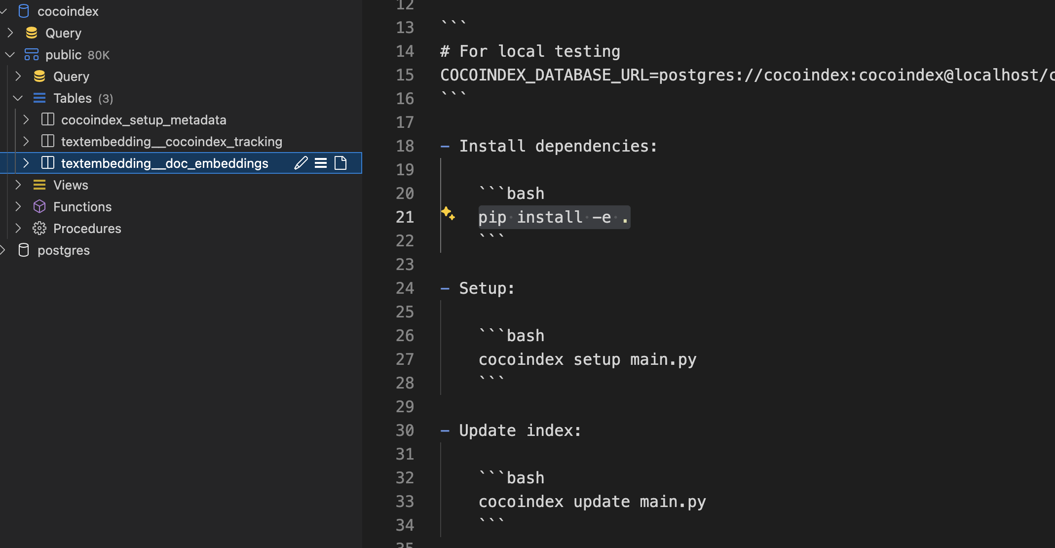 COCOINDEX_DATABASE_URL=postgres://cocoindex:cocoindex@localhost/cocoindex # 安装依赖