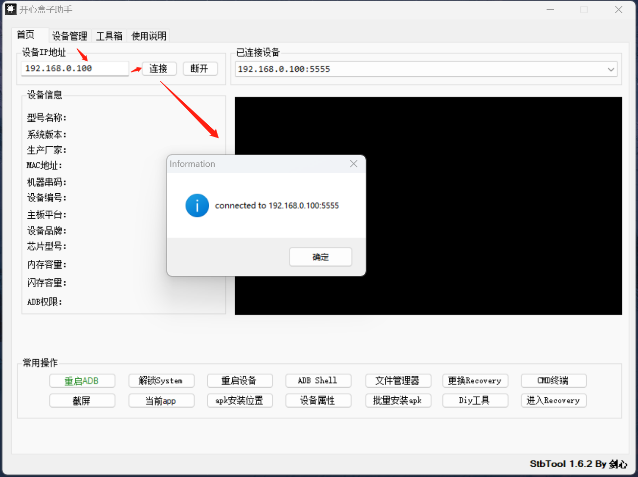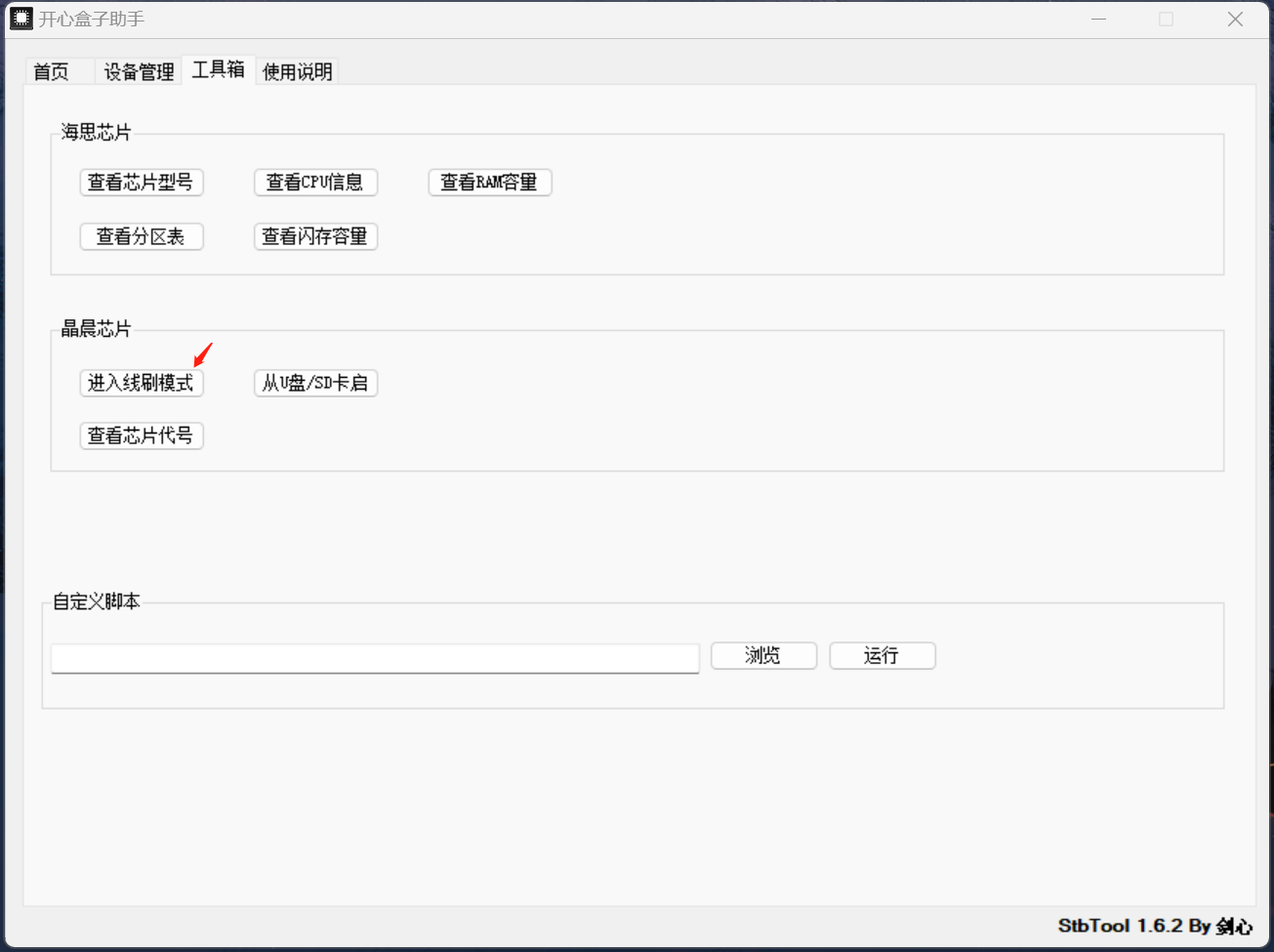 最后切换到开心盒子助手 点击进入线刷模式 盒子就重启进入刷机模式