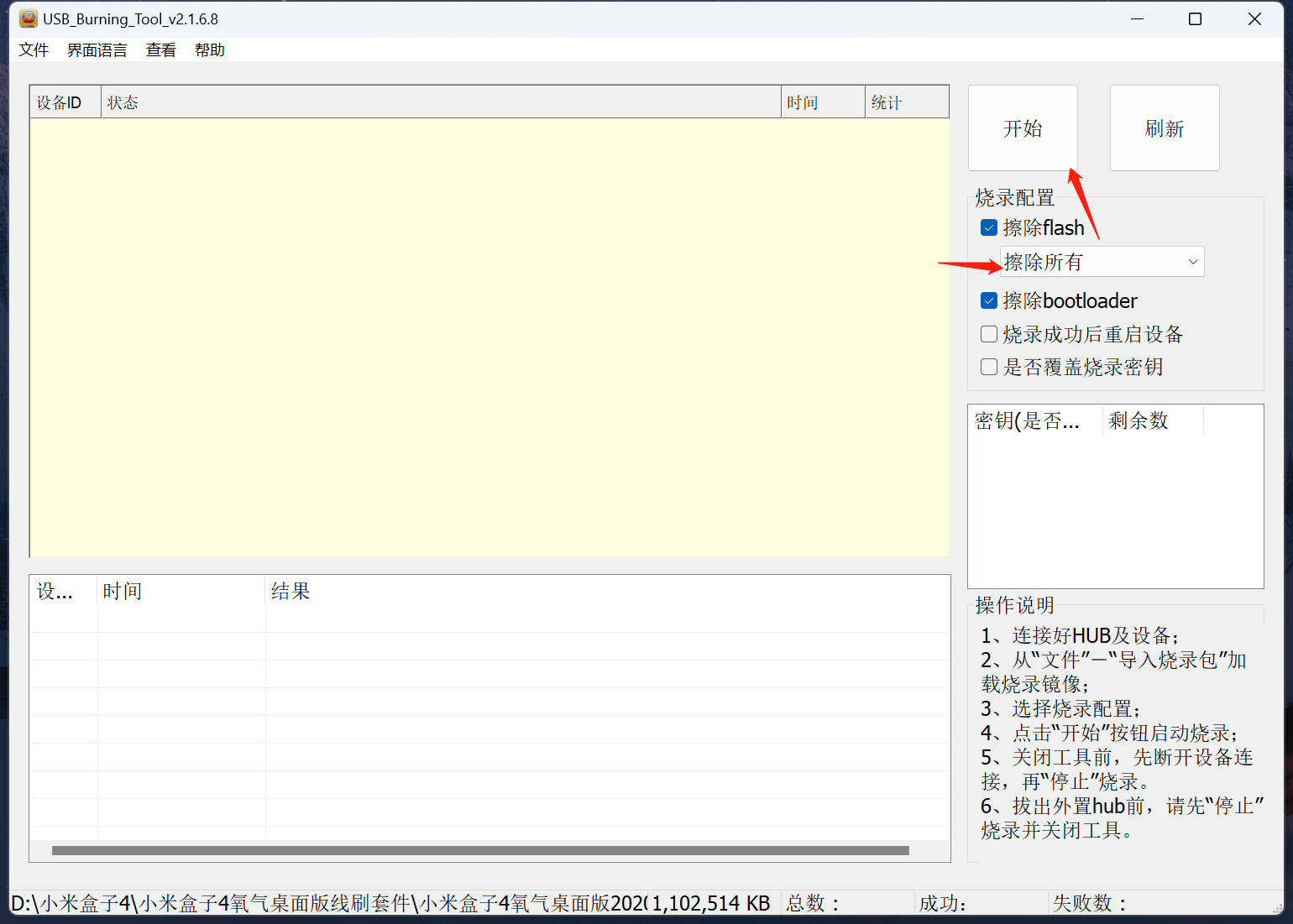 选择 刚才准备的三方固件包MiBOX4_YQZM2_root_aml_upgrade_package20200808.img。