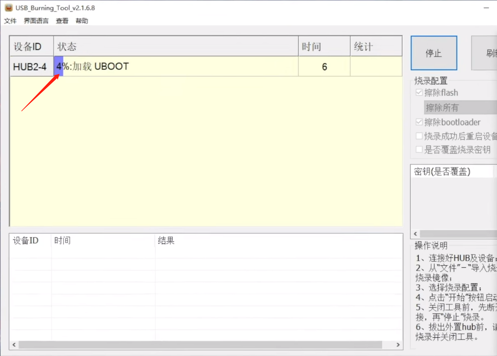 再次看看USB_Burning_Tool,就可以看到刷机进度条走动了 时间比较长 不超过2分钟吧