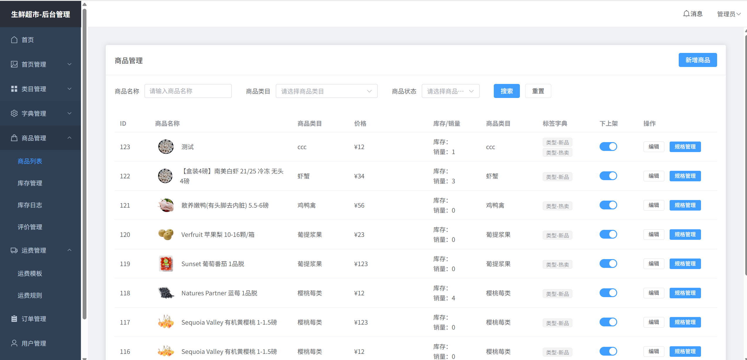 今天教大家如何设计一个 生鲜超市源码 , 基于目前最新的技术:前端vue3,后端springboot3。