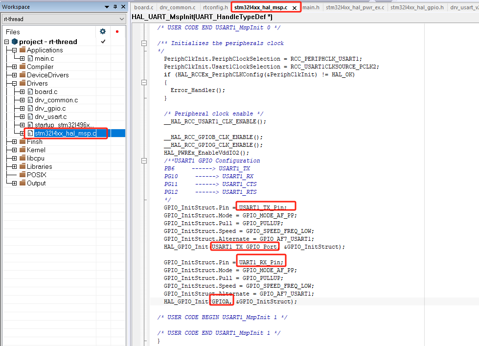 本文以stm32f4xx平台介绍串口驱动,主要目的是:1.RTT中如何编写中断处理程序:2.如何编写RTT设备驱动接口代码:3.了解串行设备的常见处理机制.所涉及的主要源码文件有:驱动框架文件(usa ...