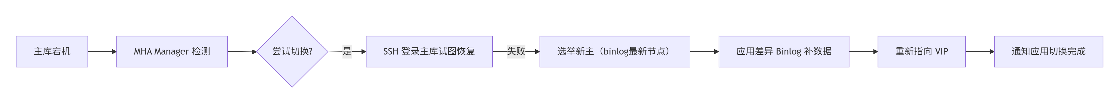 | 传统业务,可容忍分钟级数据丢失 | MHA | 轻量级、部署简单,适合非核心业务(如内部系统) |
