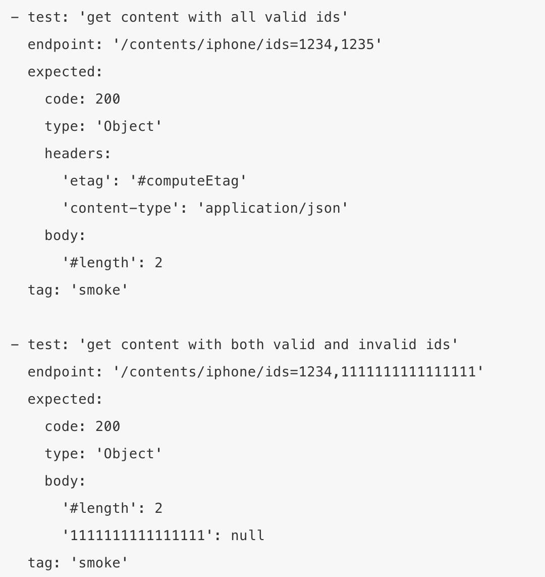 如果每个测试都写一个测试例,虽然每个的代码量并不太大,但测试一个 API 就需要 5 个测试,API 的规模一上,代码量就大了,添加和维护都很麻烦。