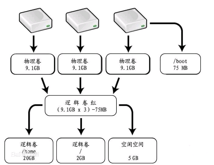 在逻辑卷之上可以建立文件系统(比如/home或者/usr等)。