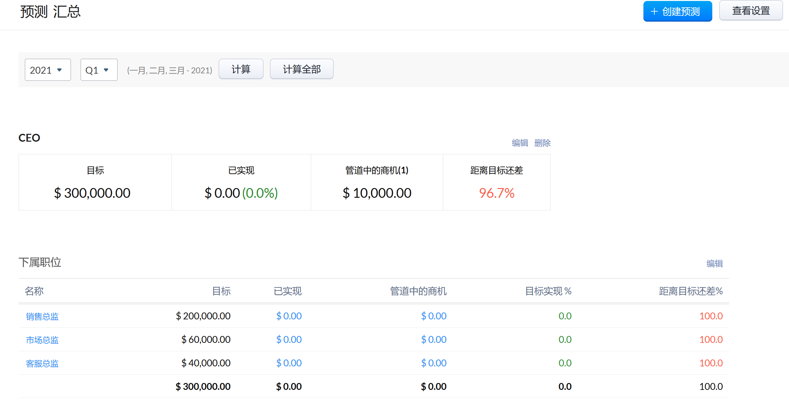 一般来说,企业管理者想要销售团队获得更好的销售业绩,不但要对销售过程进行有效地管理,还需要对销售过程中产生的数据进行分析和预测,也就是销售管理+销售预测,才能获得想要的结果。销售预测是较为进阶的功能,目前市面上的许多通用型的CRM并不具备这个功能,或者只涉及一小部分,无法起到重要的作用。而Zoho CRM具备全面且强大的销售预测功能,能够帮助销售团队分析销售数据,预知销售结果,了解销售瓶颈,提高团队绩效。