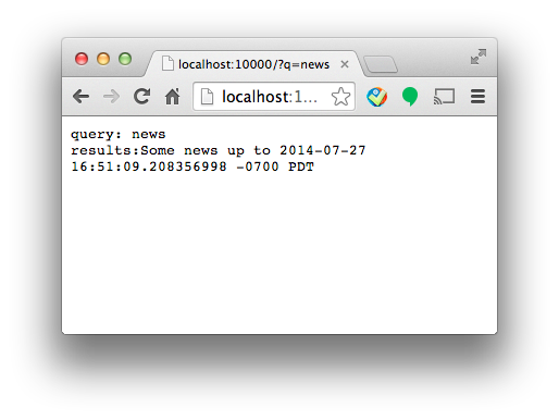 此时,在本机打开一个浏览器窗口并访问http://localhost:8080/?q=news,可以看到和上图完全一样的结果。