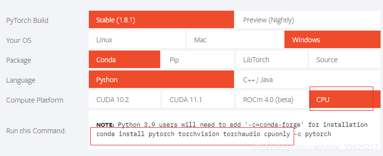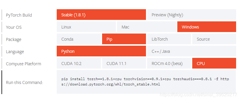 从官网上找到适合自己版本的安装pytorch的指令 https://pytorch.org/get-started/locally/