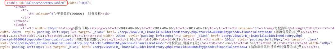 (1)右键查看源码,可以看到目标财务数据在源码中。所以核心方法同前。此处的关键内容xPath是:table id = “BalanceSheetNewTable0”。