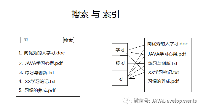 索引和搜索是Lucene的核心,看过新华字典吗?厚厚的一本新华字典,如果我们要从中找一个字需要一页一页的翻吗?当然不是,字典的前几页有目录索引,根据目录索引我们能快速定位到被查字的位置。Lucene中的索引有着异曲同工的效果,通过对文档内容分析,提取出很多关键字(分词),再为每个关键字添加位置信息(可能为多个),这样我们就能通过关键字快速定位到文档位置,提高搜索的速度。有人可能不太理解为什么添加索引能提高搜索效率,这么说你可能会懂:拿中文文档来说,汉字的数量和词的数量是有限的,假设我现在为一万本中文书建立索引 , 那么我关键词的数量最多为 一本新华字典+现代汉语词典的量,我为2万本书建立索引,我关键词的数量是不是不会发生改变,不过关键词下位置信息会增多对吧。数据越多,建立索引的时间会越长,不过能换来搜索时间稳定,很值。