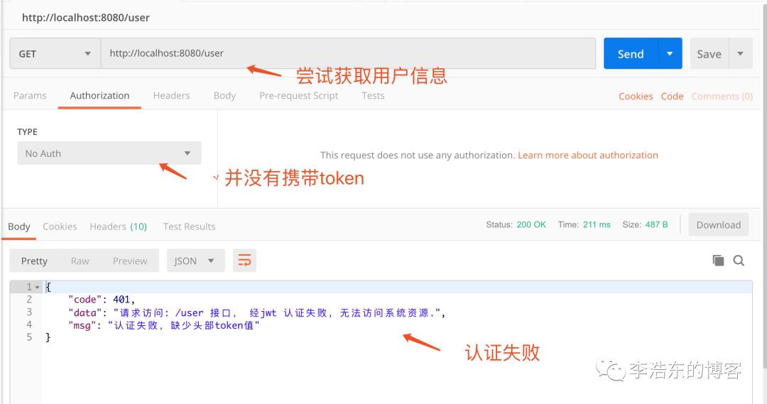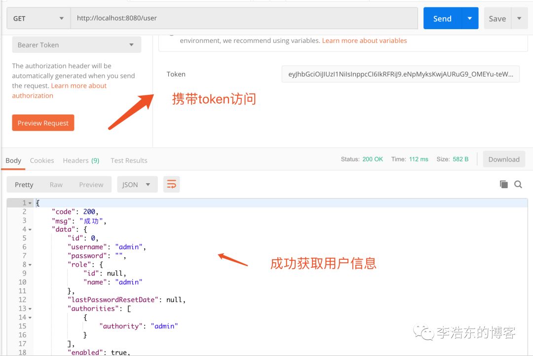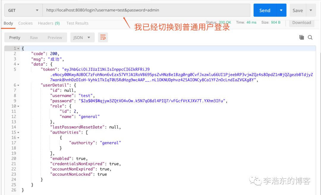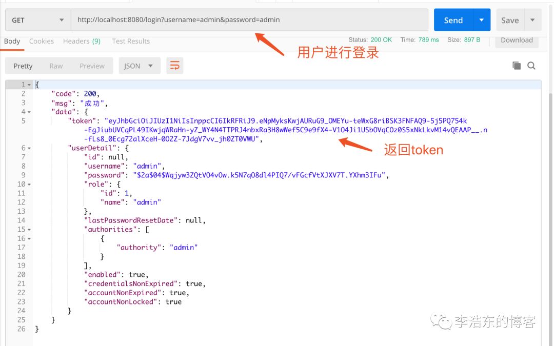 接下来进行用户登录,并获得后台向用户颁发的JWT Token