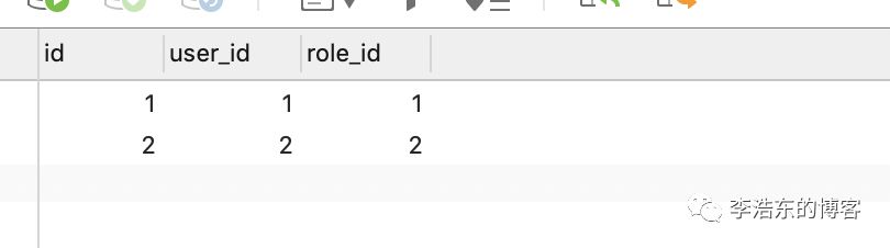 Create Table: CREATE TABLE `user_role` (`user_id` int(11) DEFAULT NULL,`role_id` int(11) DEFAULT NULL) ENGINE=InnoDB DEFAULT CHARSET=utf8