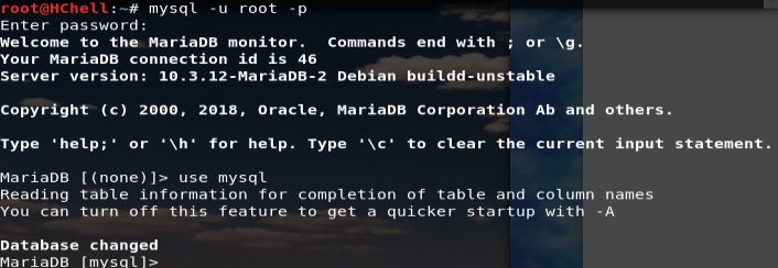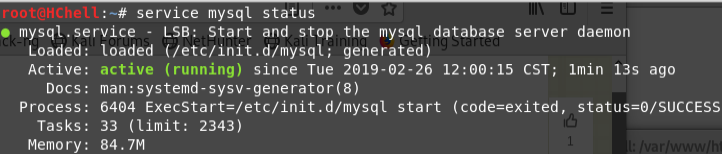 再使用mysql,因为刚刚启用的是MariaDB,KALI中自带的