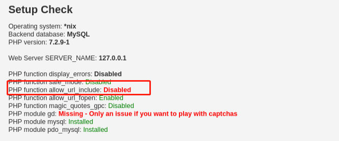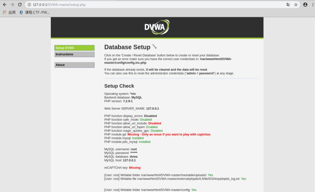 DVWA启动成功,但是还有些配置问题,接下来一一解决