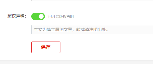 3.将博客设置里的"版权声明"选上,在下方文本框里写上自己的声明文字然后点保存即可。