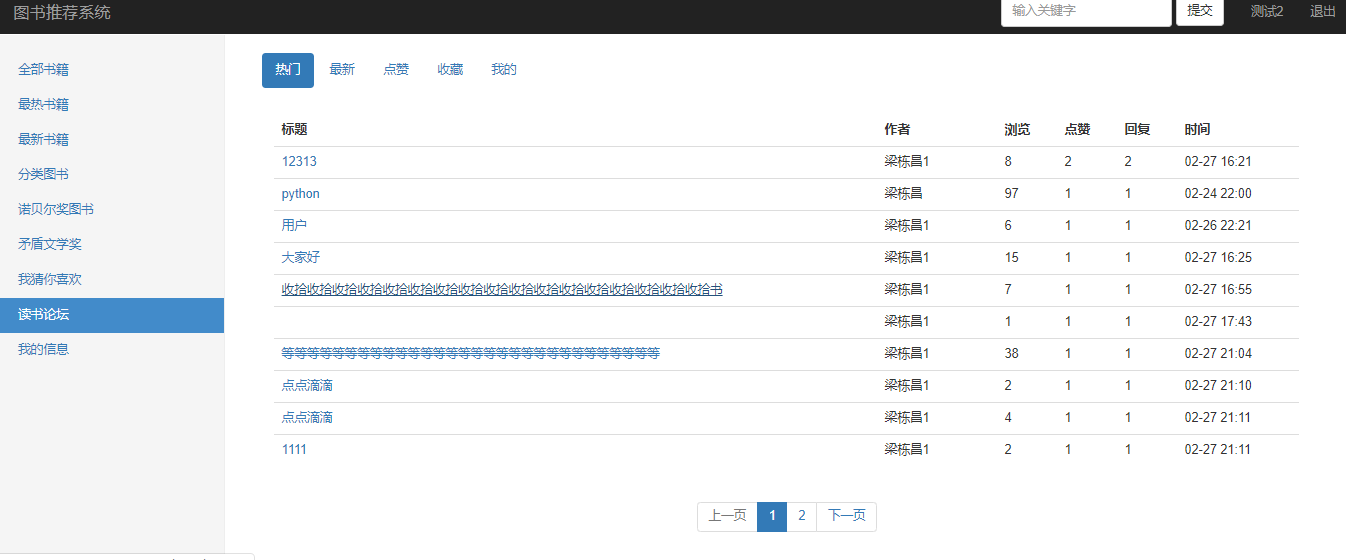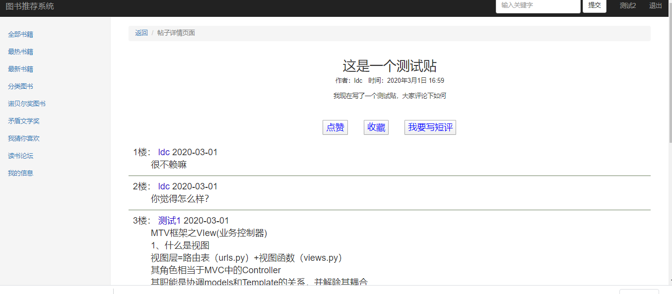 这个系统是基于Python的Django开发的,适合用来做毕业设计与课程设计,拥有的功能还是挺全面的有登录注册,书籍推荐、留言论坛等。