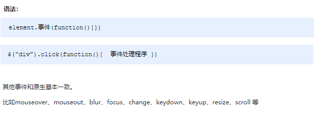 因为普通注册事件方法的不足,jQuery又开发了多个处理方法,重点讲解如下: