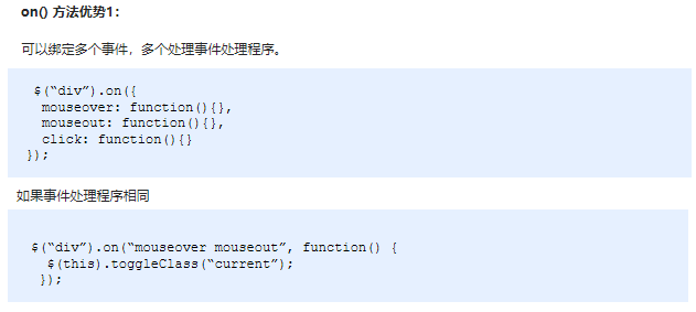 // (1) on可以绑定1个或者多个事件处理程序