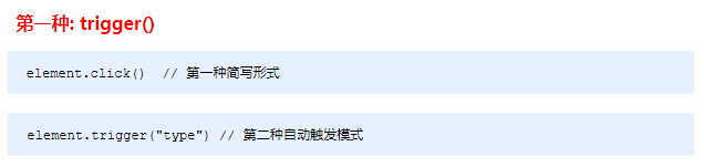 // $("div").trigger("click");会触发元素的默认行为