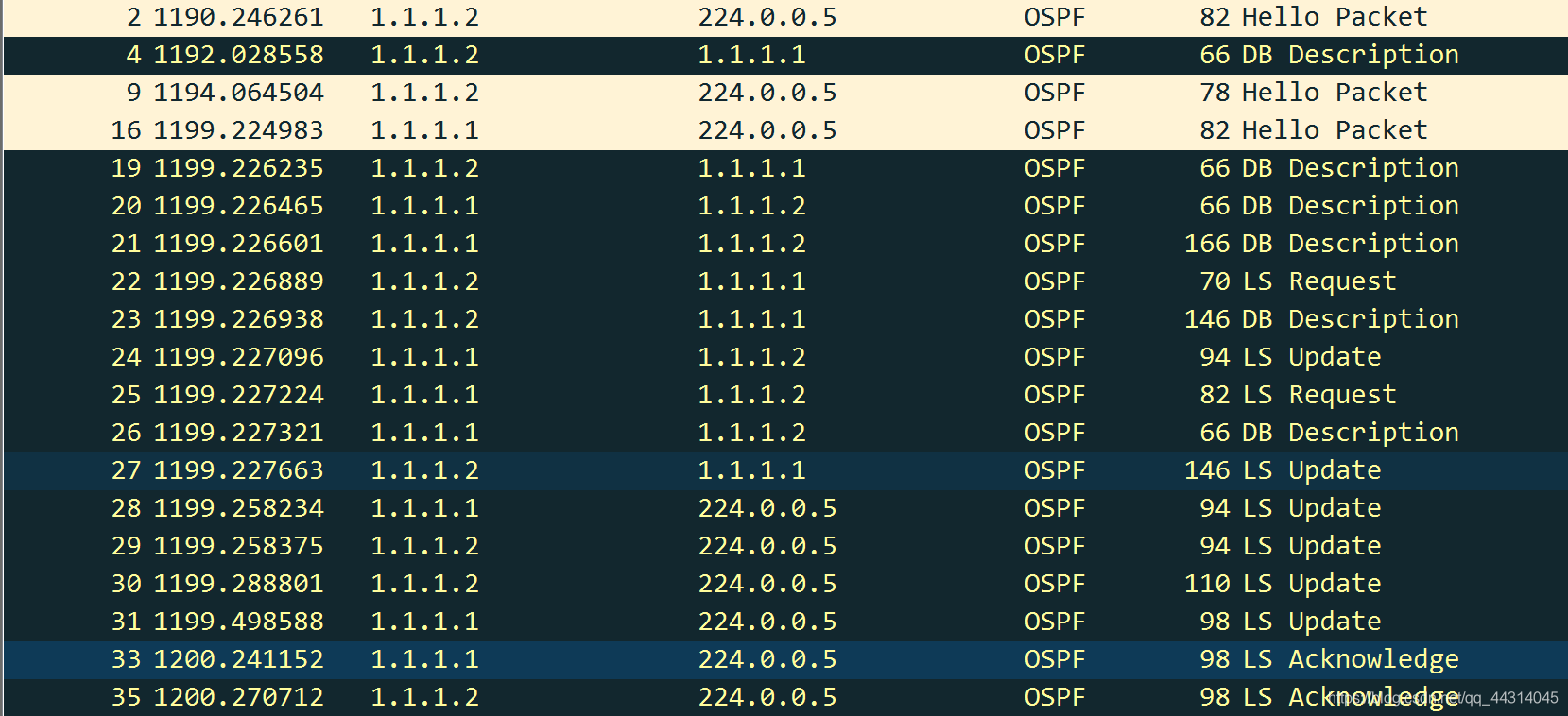 1.Hello:运行OSPF后会在区域不断发送Hello包