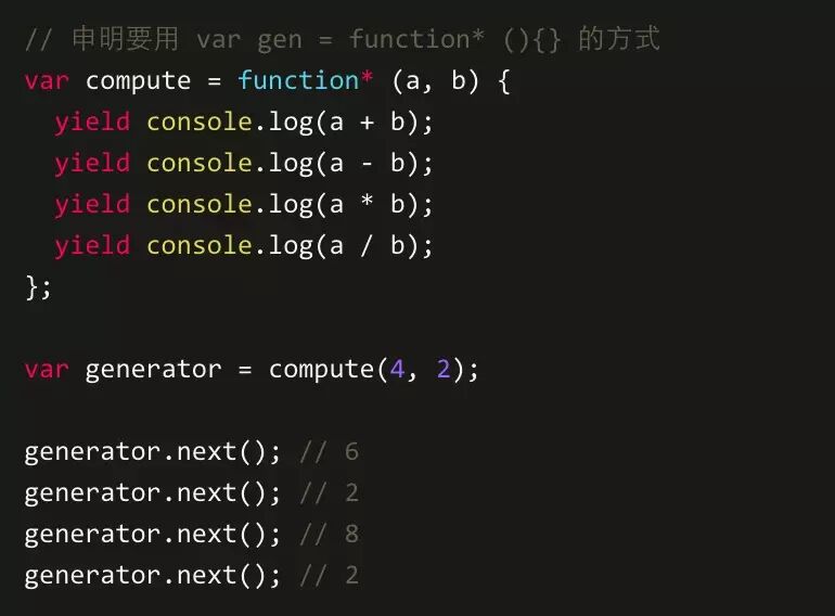 单独地介绍Generator没有太大价值,因为它除了更复杂外,功能与普通函数没有太大差别。真正让Generator具有价值的是yield关键字,这个yield关键字让Generator内部的逻辑能够切割成多个部分。并且可以灵活控制内部的执行情况。