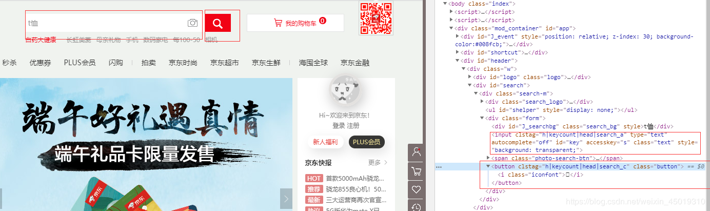 4.先找到搜索框并用selenium模拟点击(这里发现京东不需要登录就能看到商品信息)