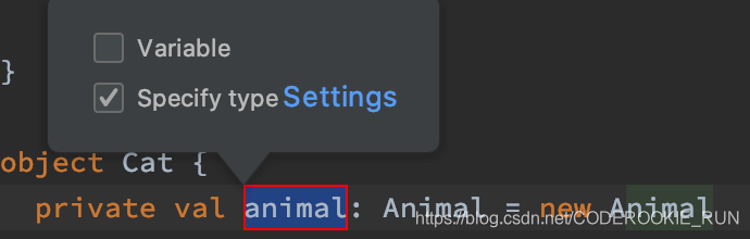 val cat2: Animal = new Cat //因为Cat继承了Animal类,所以指定类型也可以是Animal